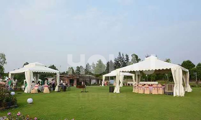 我司嚴格執行ISO9001的質量管理體系,確保不良產品的最小化及客戶滿意度的最大化。我們的的主要產品包括可移動的模塊化鋁合金支架篷房,有不同風格的篷房及裝飾可供選擇,篷房跨度從3米到60米。此外,還包括錐頂篷房和吊頂篷房,以及篷房配件,如照明燈具、地板、空調、桌椅及其它用于篷房內部的家具。篷房可廣泛應用于大小型活動、婚慶、展會、體育、酒店、航空和工業等其它領域。篷房框架結構為高強度鋁合金6061/T6型材,篷布為防水、阻燃的雙面PVC涂層聚酯纖維布,主體結構風載荷不少于100Km/h。